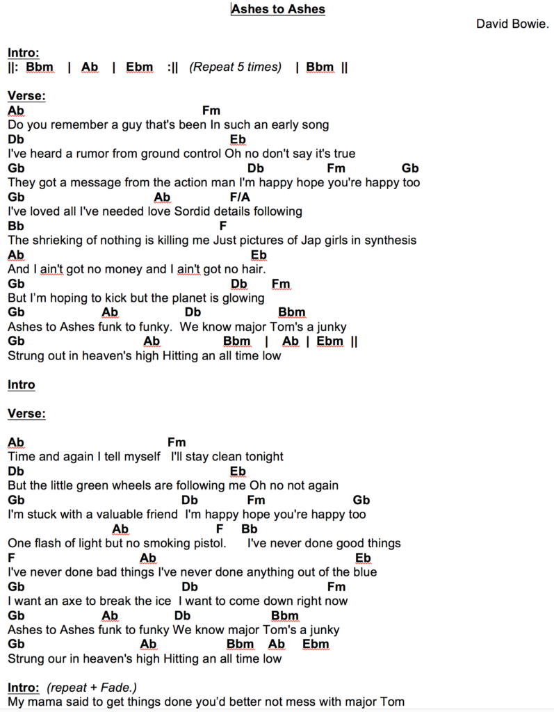 One of those such songs is David Bowie’s Ashes to Ashes.