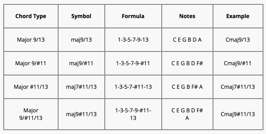 This is the most thorough and in-depth chord formulas list available on the internet.