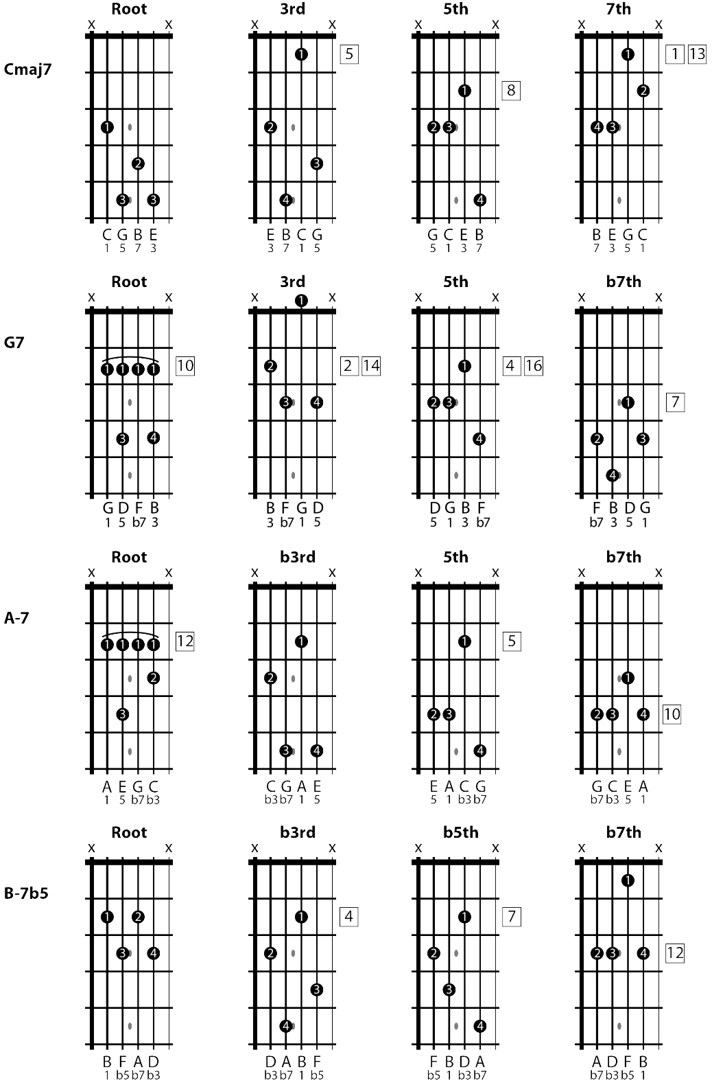 Drop 2 Voicings on Middle 4 strings vreny+ | October 28, 2019← Return to Chord Masterclass: Drop 2 Voicings On GuitarAll drop 2 voicing guitar fingerings in a C major scale on the middle 4 strings