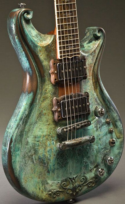 A green stained copper guitar body