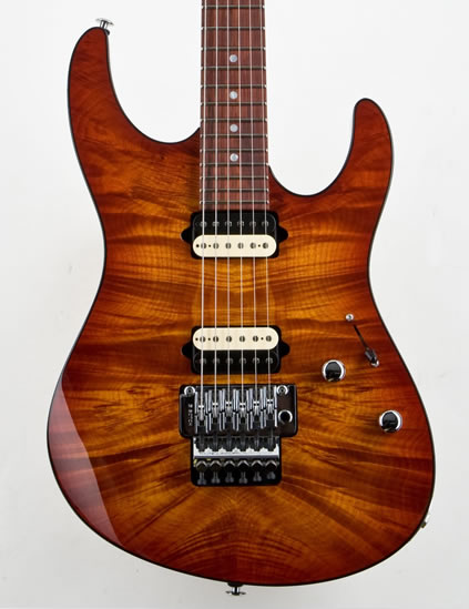 Fireburst Burl Maple vreny+ | August 19, 2013← Return to Creation of my Custom Dream Guitar (Part 4, the Final Installment: The Spec Sheet)‹›A burl flamed wood used for this guitar is unbelievably pretty.