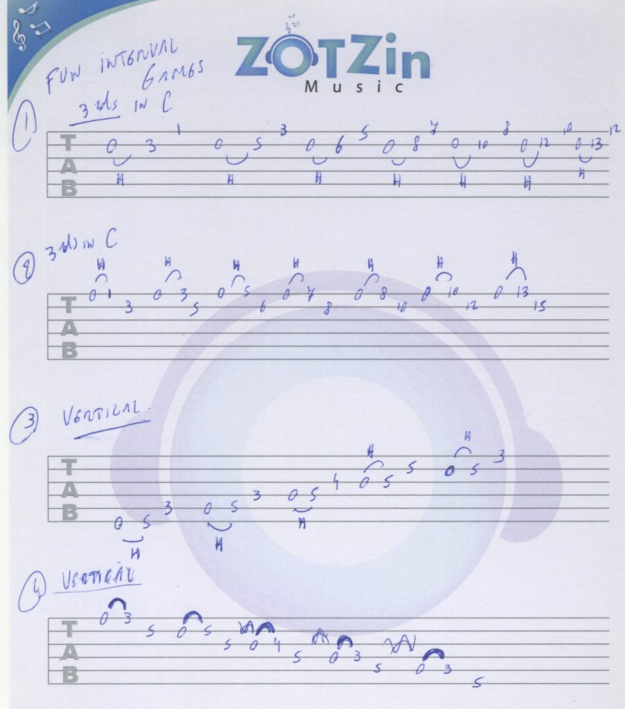 The fun really starts, when you combine different intervals and apply all of this leaping across the guitar neck vertically and horizontally.