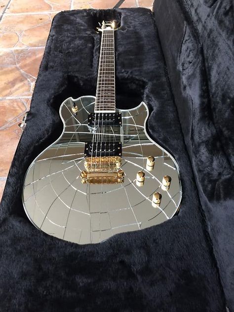 Looks like a guitar Kiss would play. Cracked mirror/chrome guitar, black pick ups and gold hardware