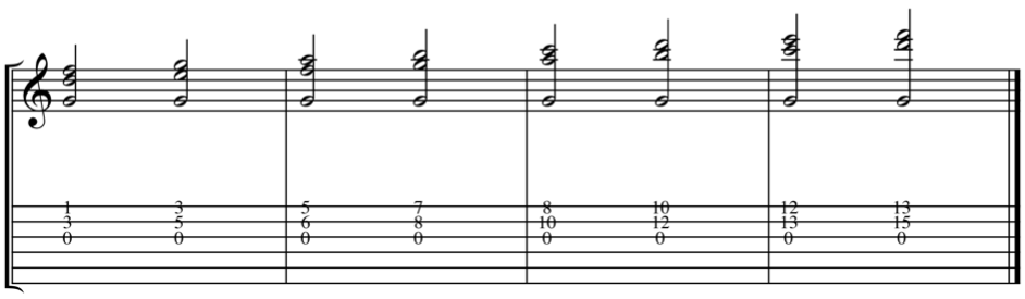 Open string voicings 6 vreny+ | April 3, 2014← Return to Fun Ways To Practice Musical Intervals.‹›Interesting and fun Open String voicings on guitar