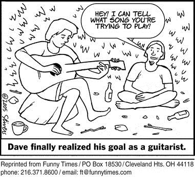 That’s a major step up vreny+ | March 22, 2012← Return to Funny or Odd Guitar Pictures and Cartoons‹›It’s a major step up when people start recognizing the cover tune you’re trying to play