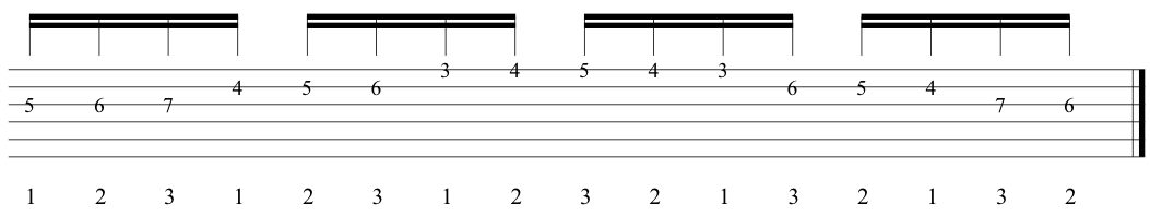 Every bar is 1 technique exercise that you want to loop. All examples are ascending melodic phrases.
