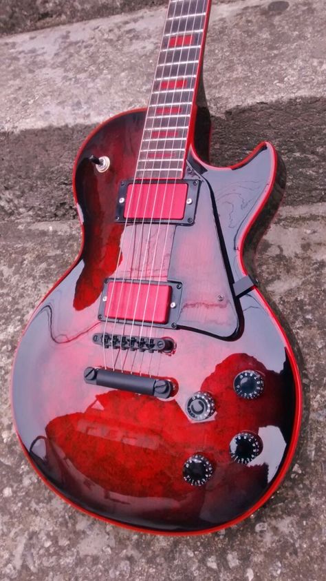 It’s Very Red vreny+ | March 19, 2021← Return to Guitars and Jokes I Love‹›All red Les Paul with red pick up covers, black burst edges and black hardware and knobs