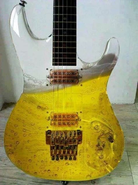 I can’t tell if this is a white guitar with a beer paint job, or if this guitar body is filled up with beer
