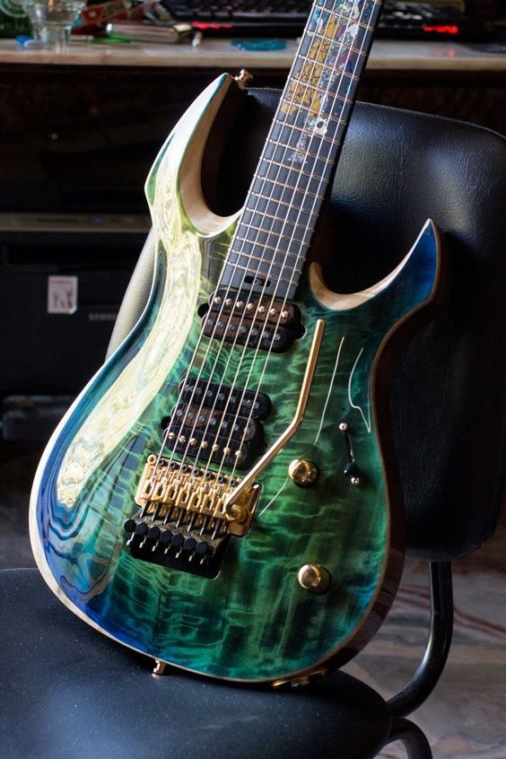 Green blue 7 string vreny+ | October 31, 2019← Return to Guitars, Humor, Accessories and Other Fun Stuff‹Green and gold is a gorgeous combination