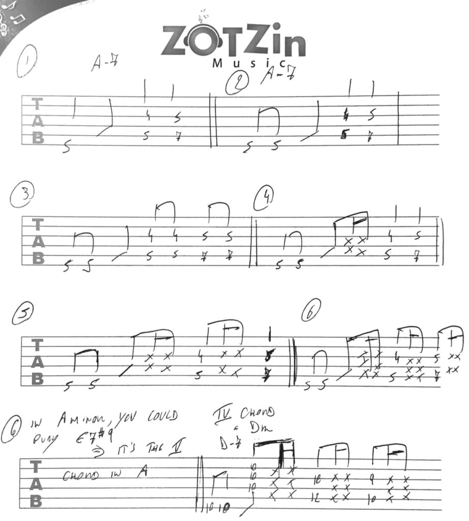 It’s mentioning that in this key, the key of A minor, you could play the Jimi Hendrix chord E7#9 as the V chord.