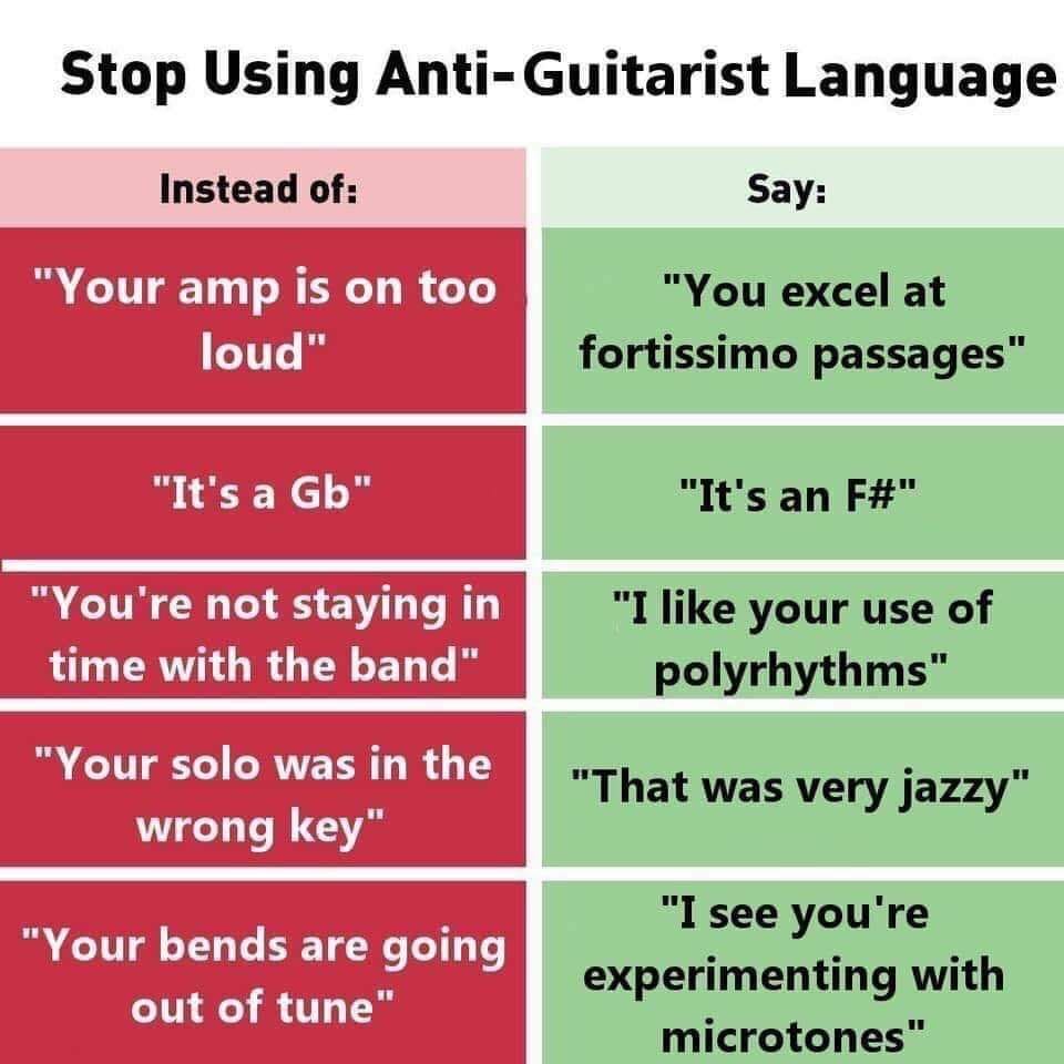 Anti Guitarist Language vreny+ | January 4, 2019← Return to Hysterical & Silly Guitar and Music Jokes & Memes›Because we all like positive attitudes
