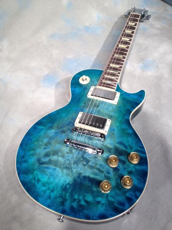 Luminiscent Blue Les Paul vreny+ | October 31, 2019← Return to Improvisation Brain Benefits, Robert Fripp and Cool Guitars‹›The chrome hardware and golden knobs seems a bit of a mismatch.