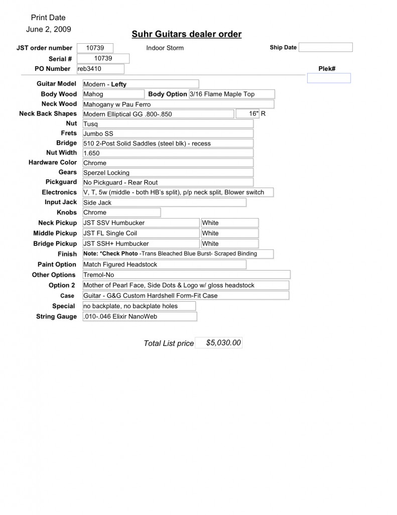For the Suhr fans out there and the fans and guitar gear heads: here are the specs
