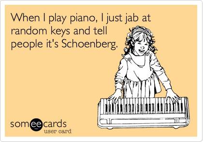 Making fun of Schoenberg’s music vreny+ | September 22, 2013← Return to More Musician Jokes‹›Jabbing at random keys and tell people it’s Schoenberg