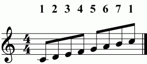 When C is 1 (meaning: “the first note in a series of notes”), it is a C scale, when E is 1, it is an E scale, when G is 1, it is a G scale.