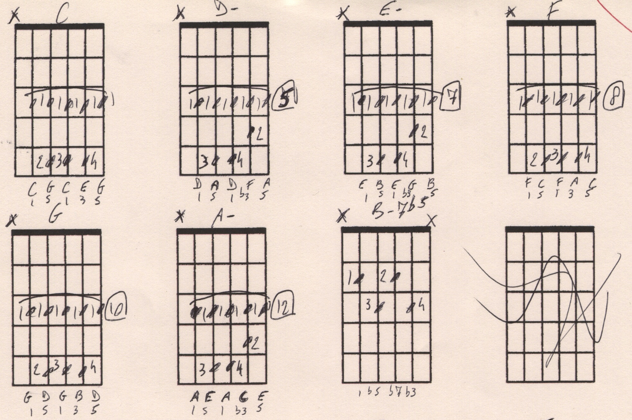 A shape Bar chords in C vreny+ | April 30, 2015← Return to Open G String Bar Chord Minus the Bar.›A shape Bar chords in C