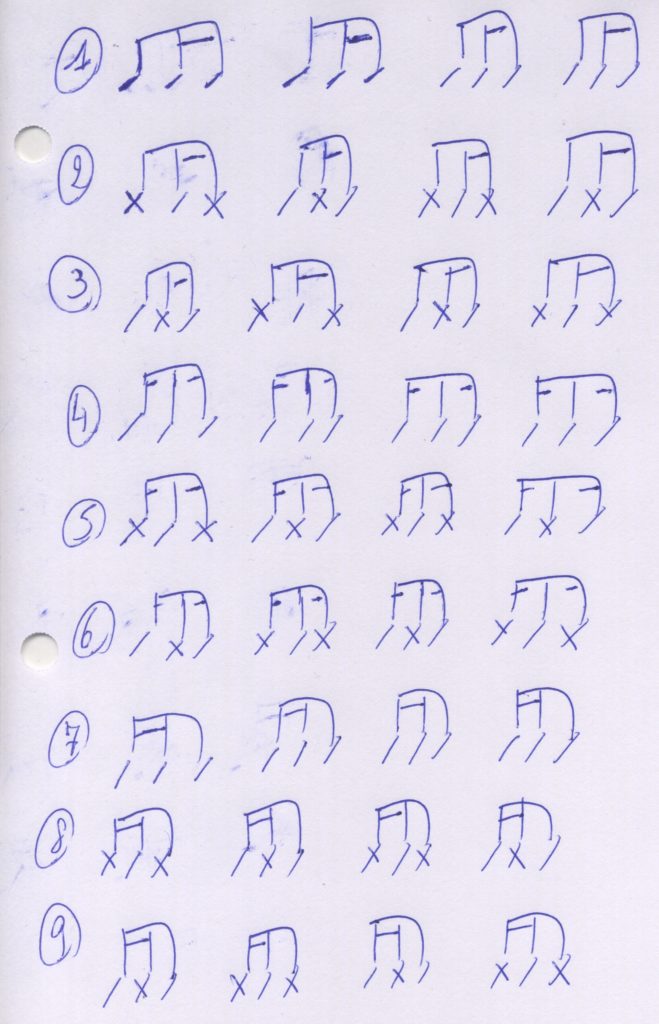 We all know these following exercises of course, which are really good to develop time feel and rhythmic coordination.