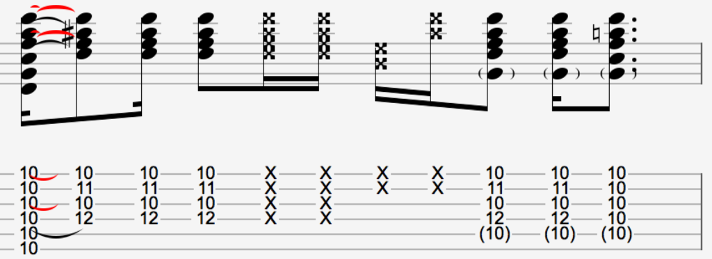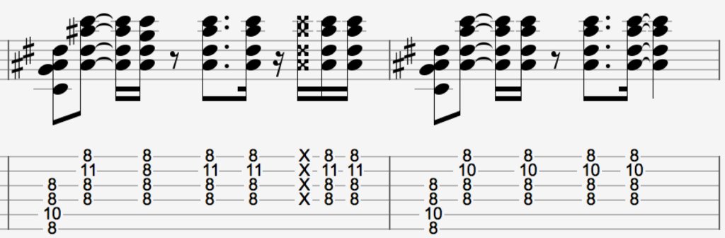 Keep in mind: music notation of such rock guitar rhythm accompaniments can oftentimes be a tad bit arbitrary.