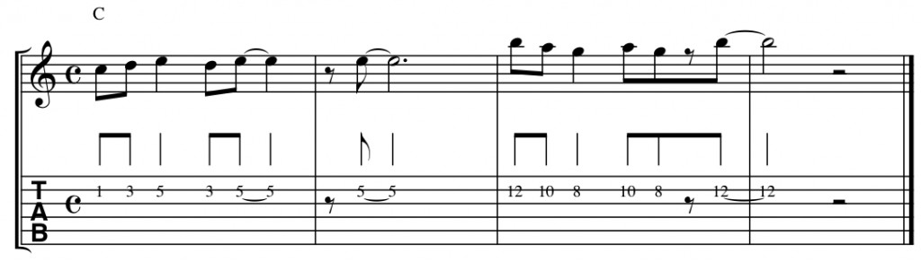 Following graphic shows how the above melody can easily be performed on 1 string only.