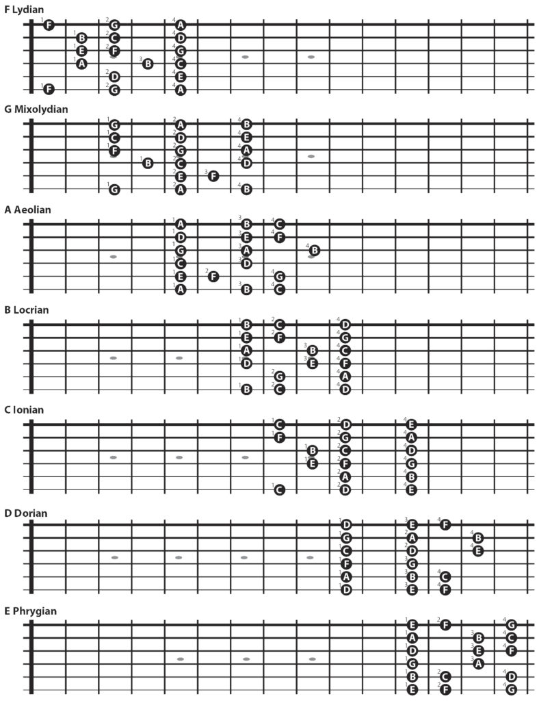Keep in mind: these are merely names of the finger patterns, not necessarily names of scales.