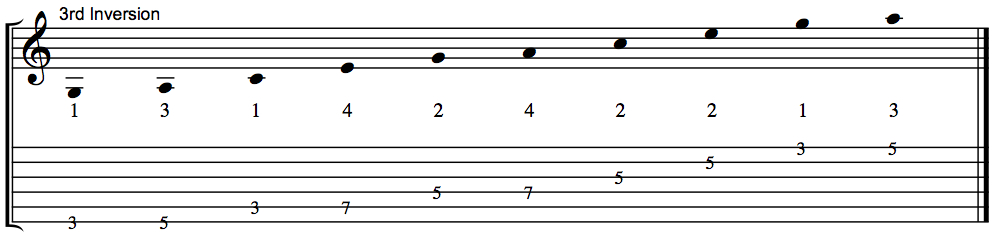 The m7 Chord, 2nd and 3rd Inversion Arpeggio Fingerings.