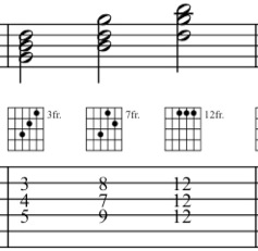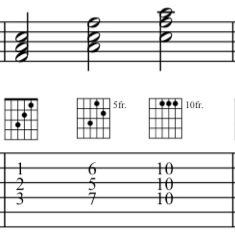 Play these 3 C chord shapes up and down the neck till you feel pretty confident you have them memorized.