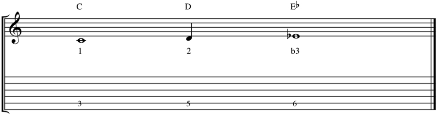 Music notation showing a minor 3rd interval vreny+ | April 2, 2014← Return to The Study of Musical Intervals Part 3: The 3rd Interval‹›Music notation showing a minor 3rd interval
