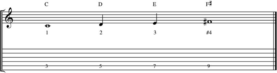 Music notation showing an augmented 4th interval vreny+ | April 2, 2014← Return to The Study Of Musical Intervals Part 4: The 4th Interval‹Music notation showing an augmented 4th interval