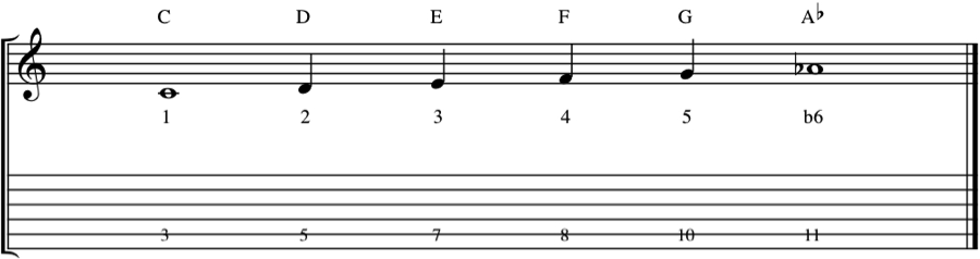 If the note you’re on is one of the other 4 notes (C, D, F, G) in a C major scale, you will use the major 6th fingering.