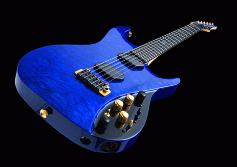 An innovative guitar design, blue, black and gold hardware vreny+ | January 28, 2014← Return to Intermediate Guitar Lessons‹›An innovative guitar design, blue, black and gold hardware