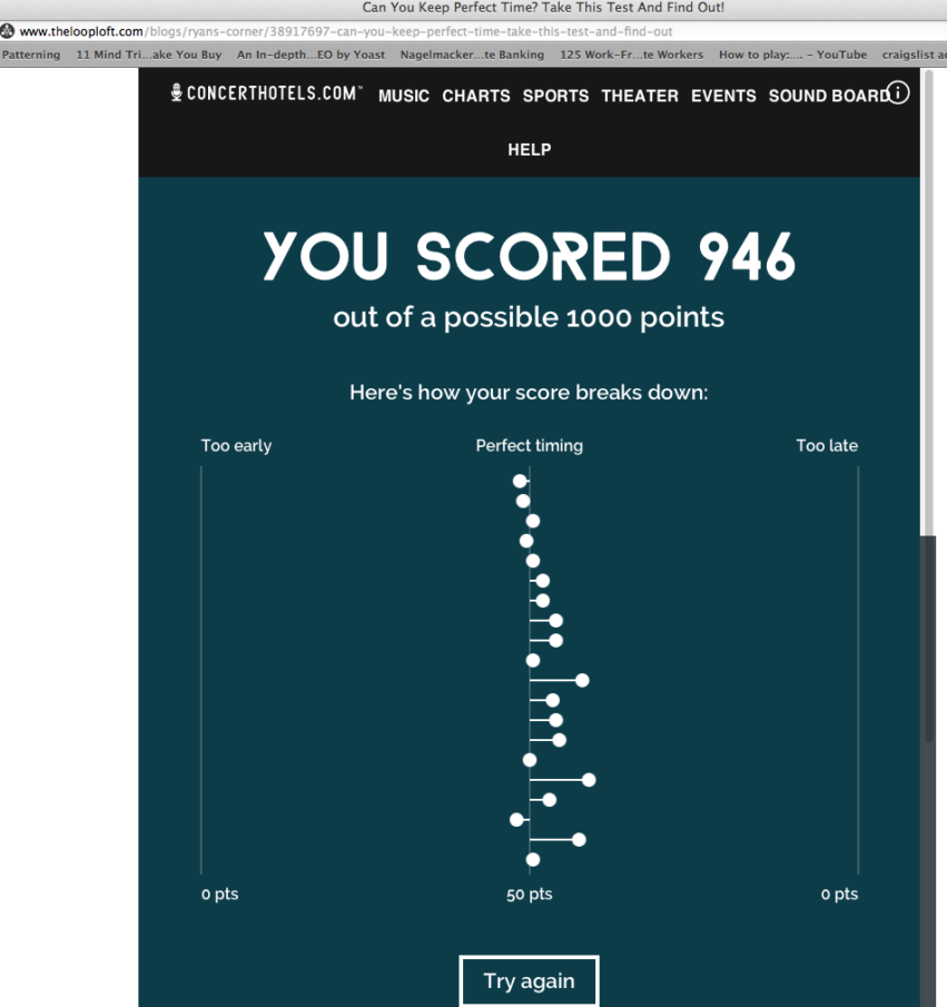 timing-score vreny+ | September 21, 2016← Return to timing-score‹›I had an almost perfect score in my time-feel